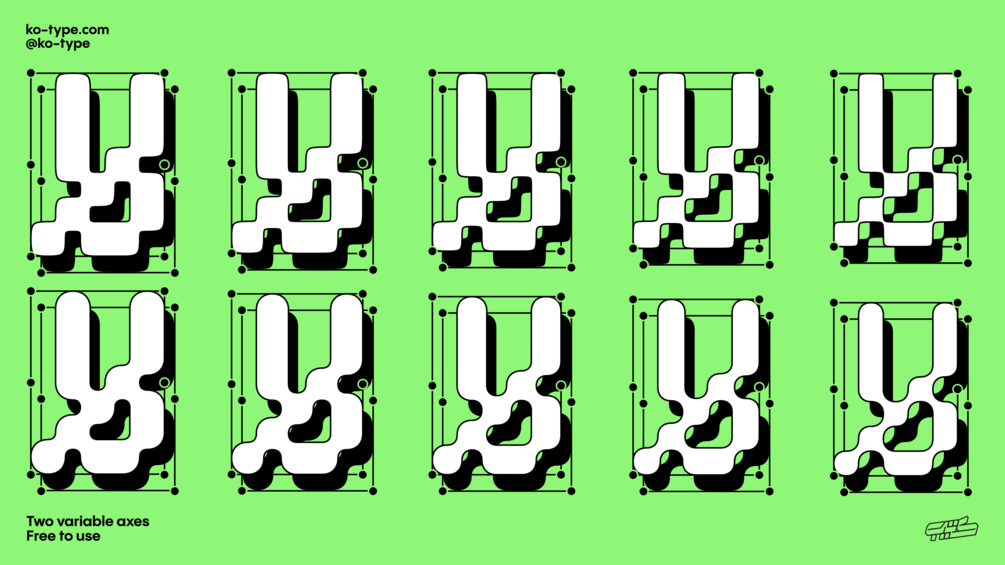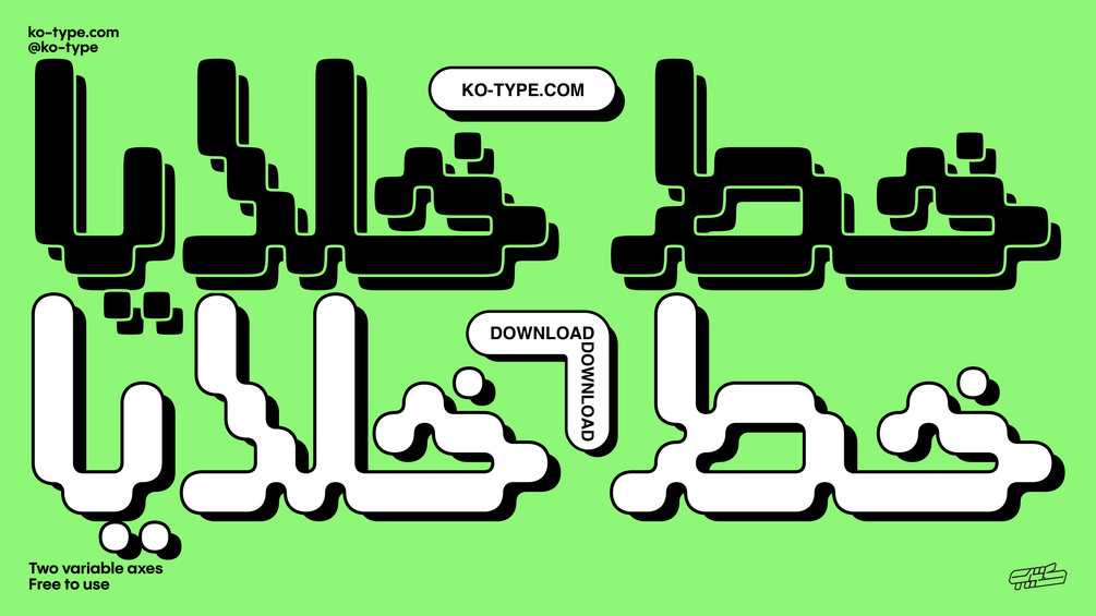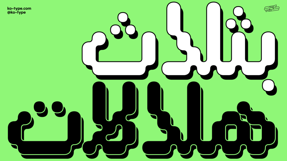 Khalaya is an industrial geometric font with two variable axes: one for weight and the other for corner curvature. The name 'Khalaya' means 'cells,' reflecting the font’s design, which is based on building blocks and the connections between them, resembling the structure of cells. Its inspiration comes from Latin posters and typefaces that have no Arabic counterpart. Taking on this challenge, we developed Khalaya while maintaining the foundation of Arabic Naskh calligraphy, ensuring the typeface achieves optimal readability.