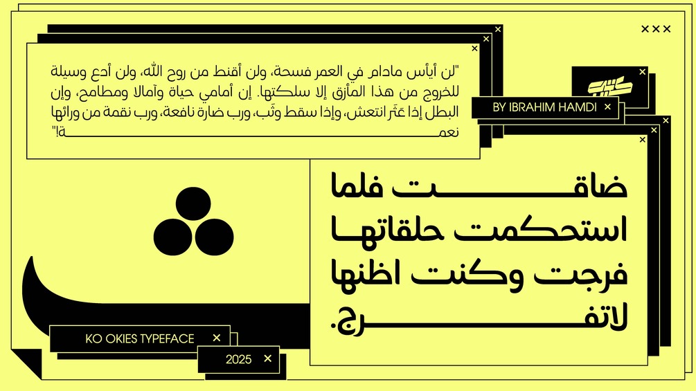 Kookies Typeface is a modern Arabic typeface. It features seven distinct weights—from Thin to Extra Bold—offering flexibility for a wide range of applications. The design strikes a unique balance between sharp and rounded edges, creating a friendly yet professional appearance. Kookies was specially crafted for food branding and packaging projects, but its clean, contemporary look makes it incredibly versatile, performing beautifully in both large headlines and small text.